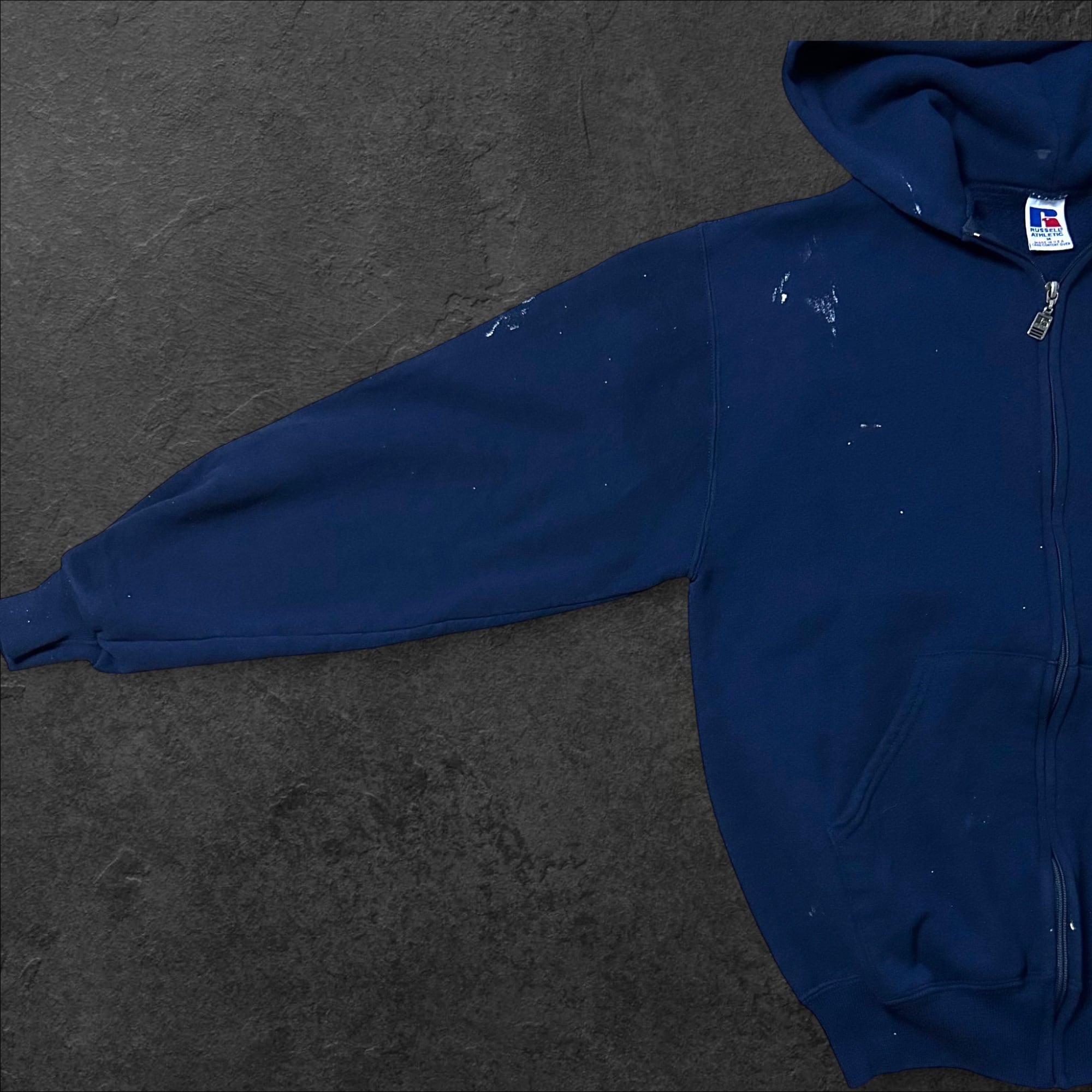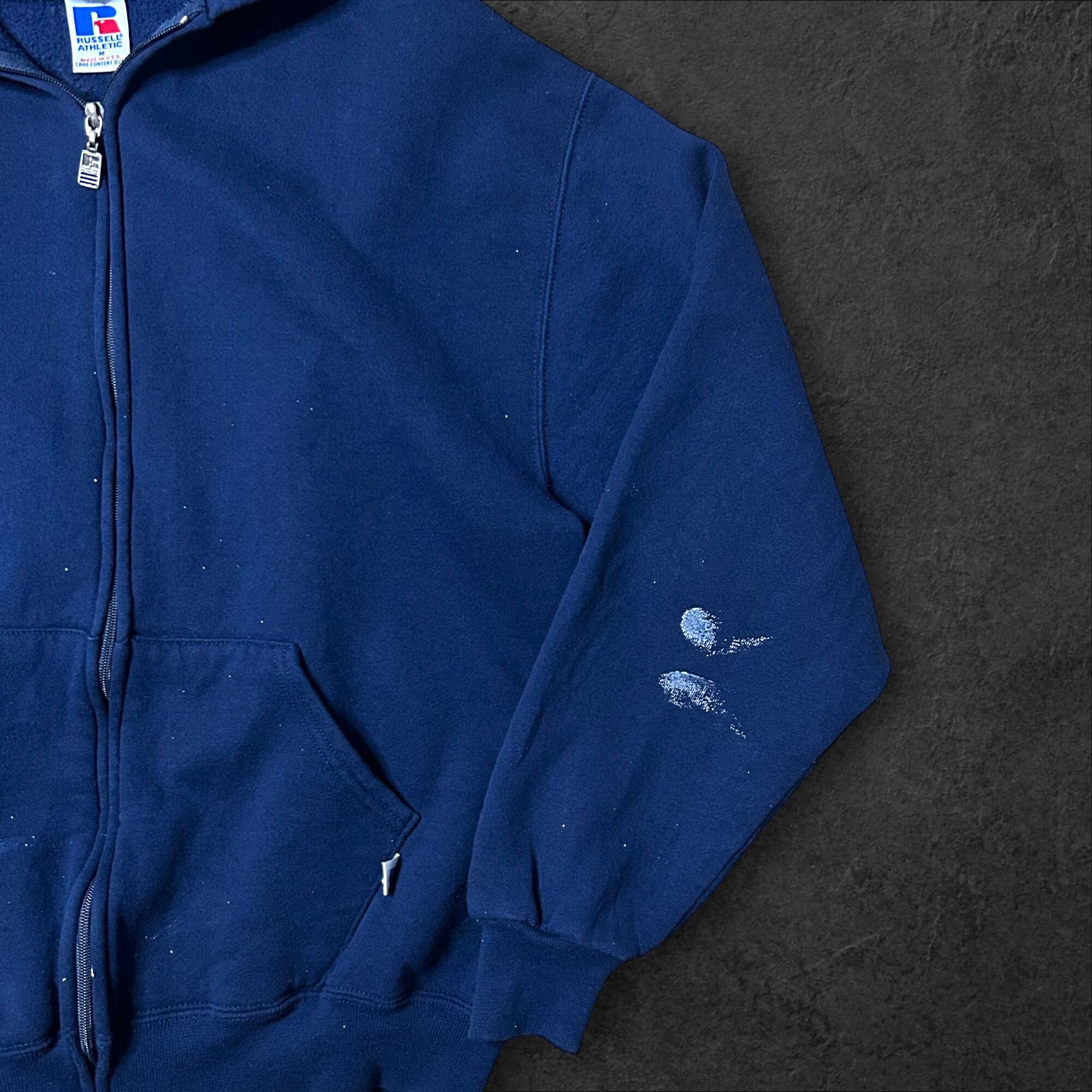90s Made in USA フルジップスウェットパーカー(ネイビー/ペンキ跡仕様)